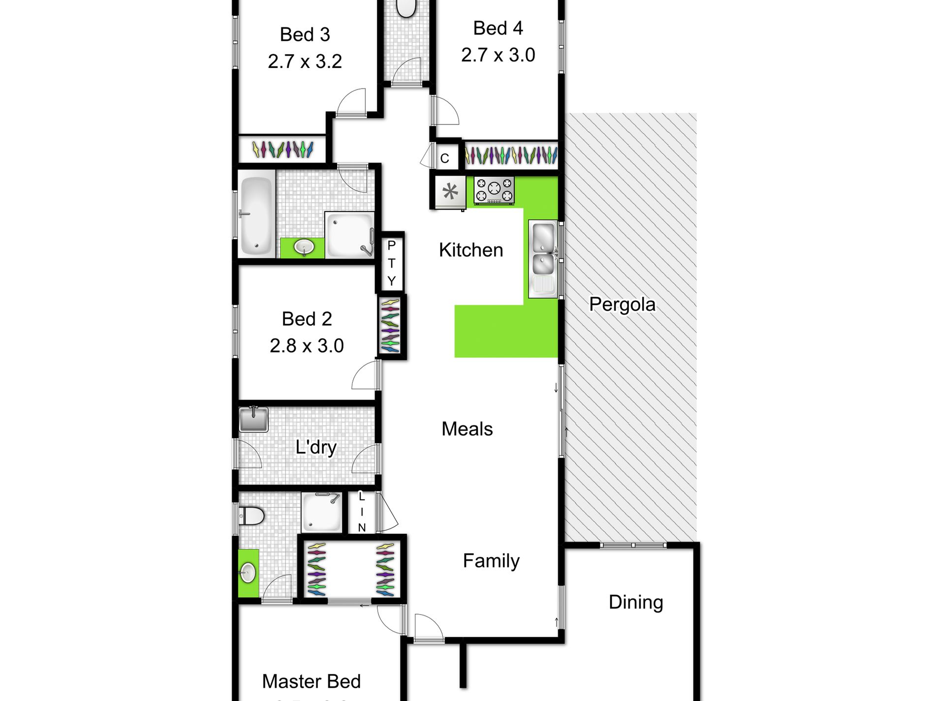- Four generous sized bedrooms with built in robes, the master suite complete with WIR and ensuite